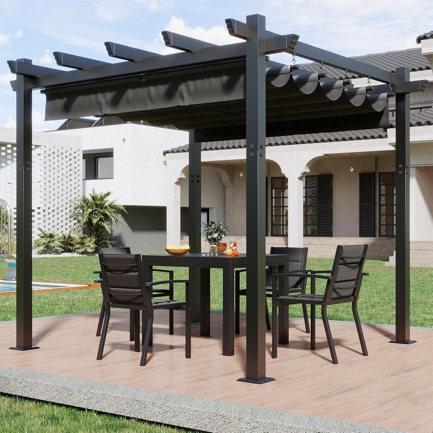 Devoko Gazebo Pergola 3x3,Gazebo Esterno Resistente,Pergolato da Giardino UV50+,Pergola Bioclimatica per Arredo Giardino Terrazzo,Nero